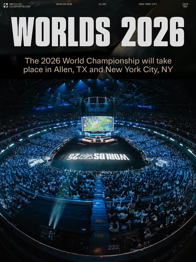 世界大賽 (Worlds) | 2026 年 9-11 月 | 美國 (德州 & 紐約) | 18 支隊伍 | 重返北美,決賽在紐約 |