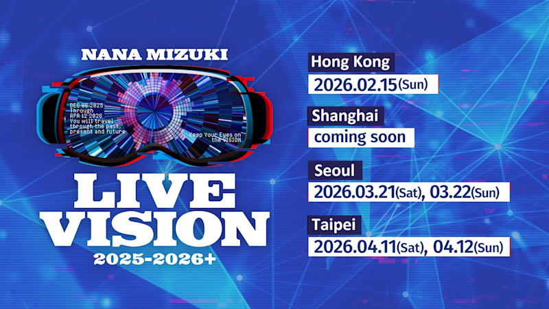本次巡迴主題為「NANA MIZUKI LIVE VISION 2025-2026」,並以「KEEP YOUR EYES ON THE VISION」為核心Slogan。更令人振奮的是,在[2025年11月7日],官方正式宣布加開亞洲巡迴「LIVE VISION 2025-2026+」,其中台北場赫然在列!