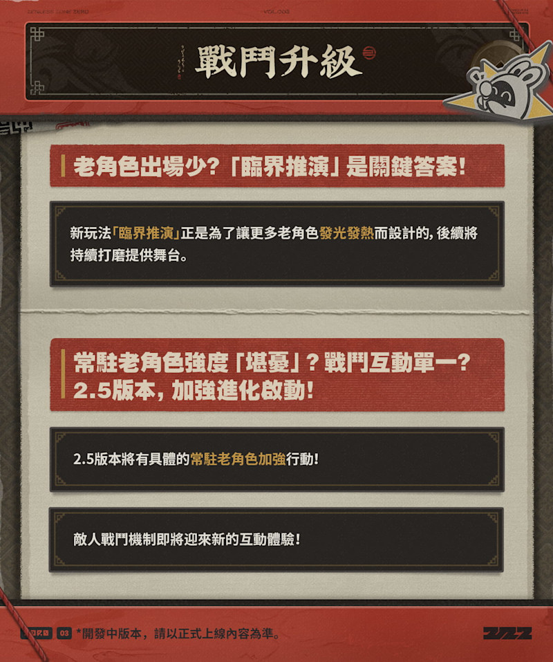 2. 舊角色強化,「臨界推演」系統上線